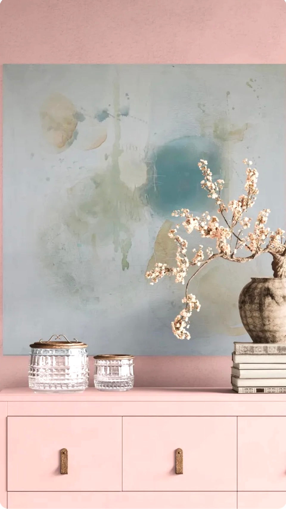 This piece is meant to be lived with—a visual pause that brings calm, balance, and depth to a space. A Meditation works beautifully in serene interiors, offering a sense of openness and ease while quietly anchoring the room.