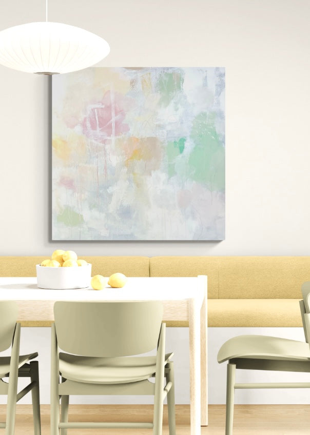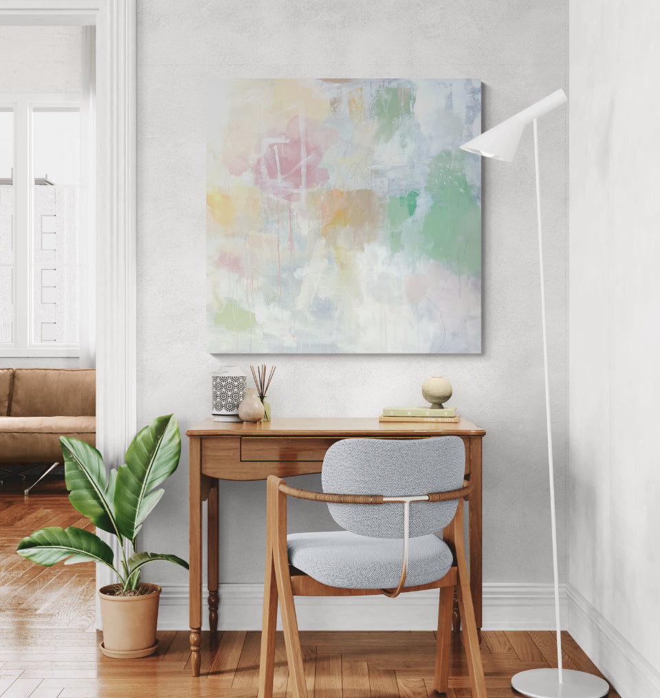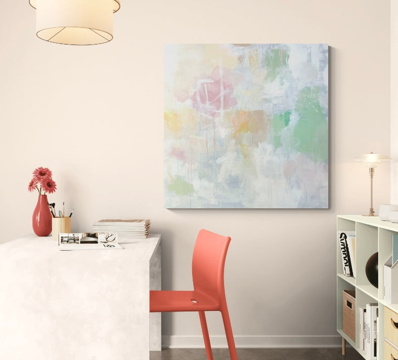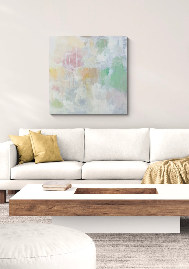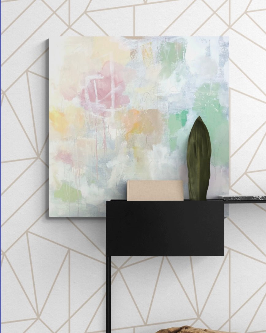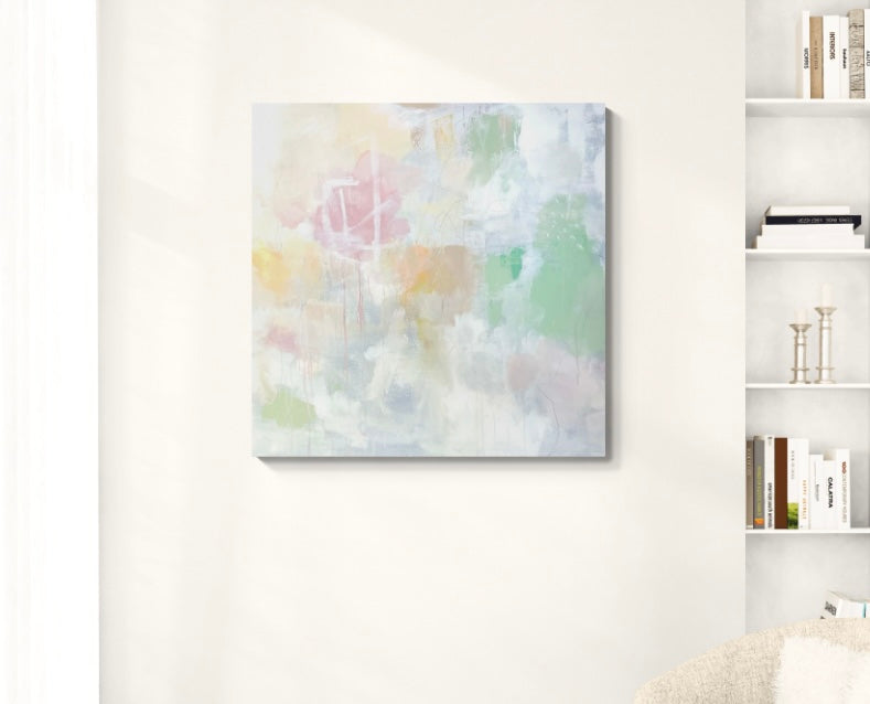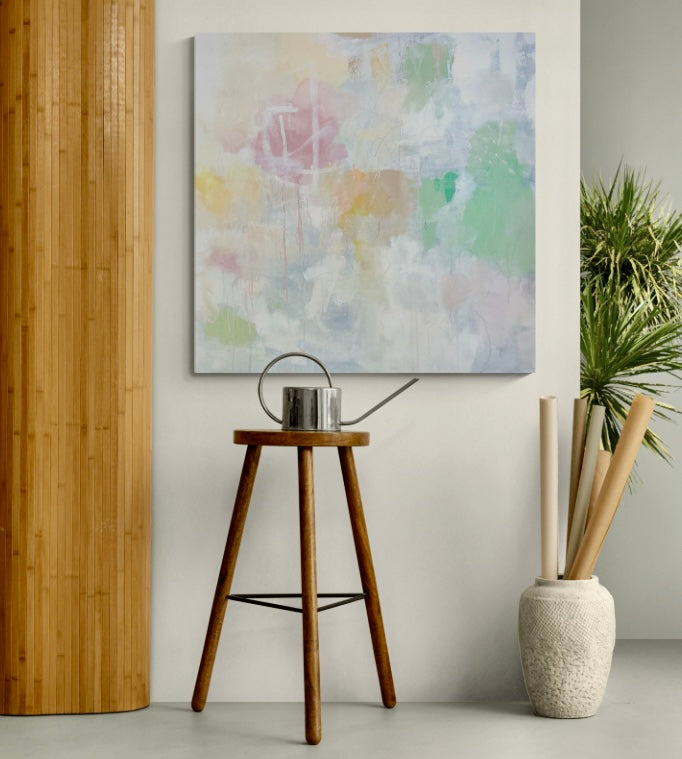 I'm drawn to moments of quiet- the spaces between decisions, the softness that appears when nothing is forced. This painting reflects that pause where color settles edges bluer and light becomes part of the composition rather than something applied afterward.